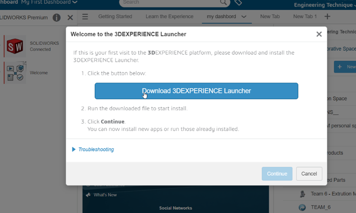 The platform will prompt you to download the 3DEXPERIENCE Launcher.