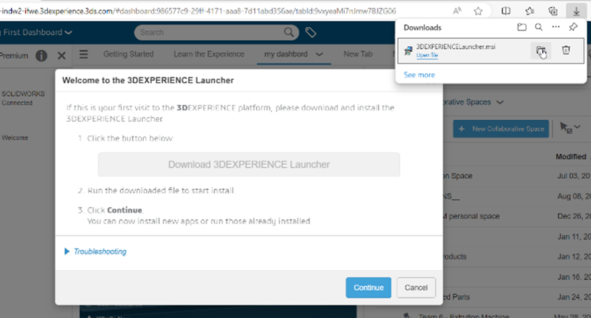 After installing the launcher, return to the 3DEXPERIENCE platform.