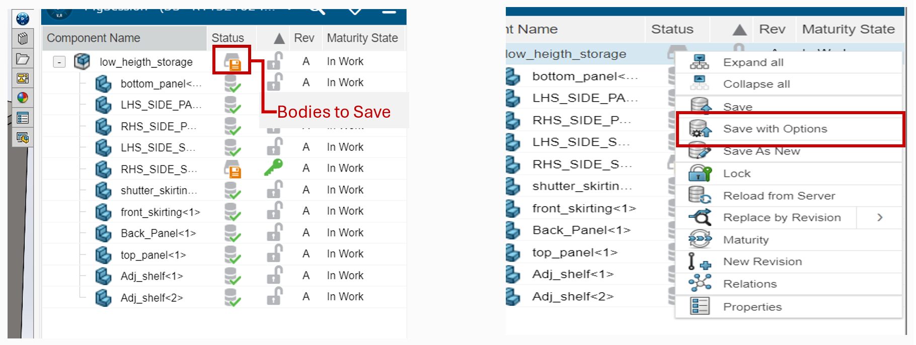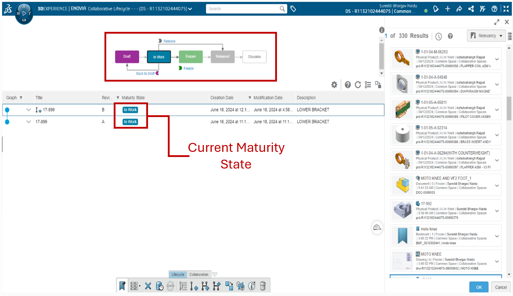 We can also change the maturity state of the parts from one state to other.