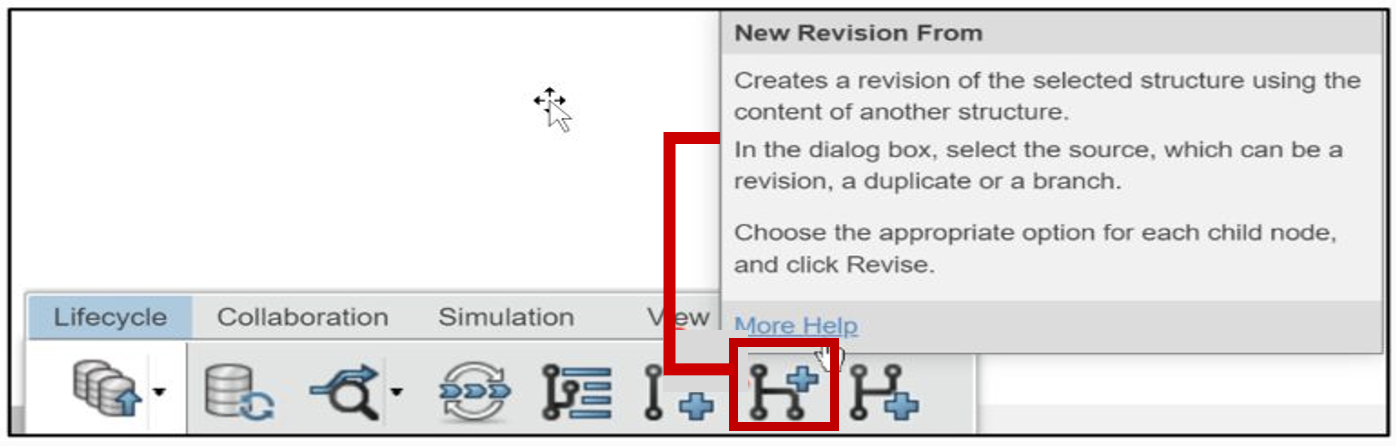 New Revision From: Create a revision of the selected structure using the content of another structure. In the dialog box, select the source, which can be a revision, a duplicate or a branch. Choose the appropriate option for each child node and click Revise.