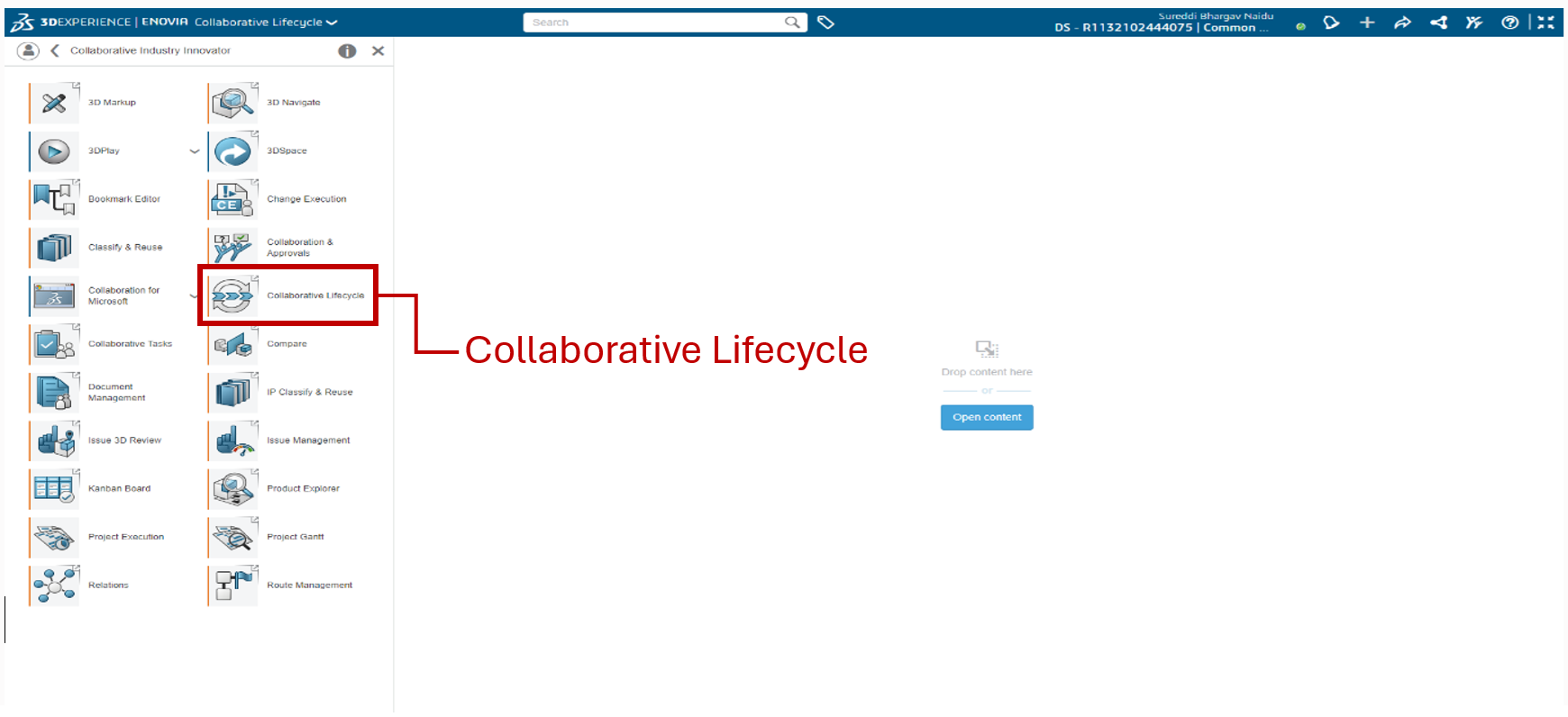 Upon logging in, navigate to the Compass icon on left top of the page. This will grant you access to the Collaborative Industry Innovator role, where you will find all the apps in the CII.