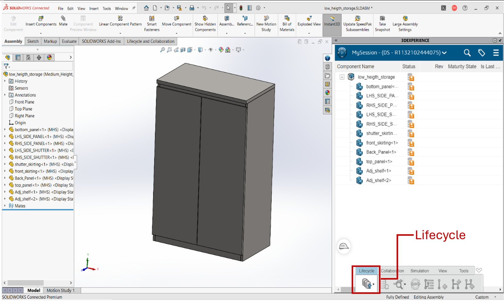 Click on the assembly or part so that the Lifecycle options will be highlighted.