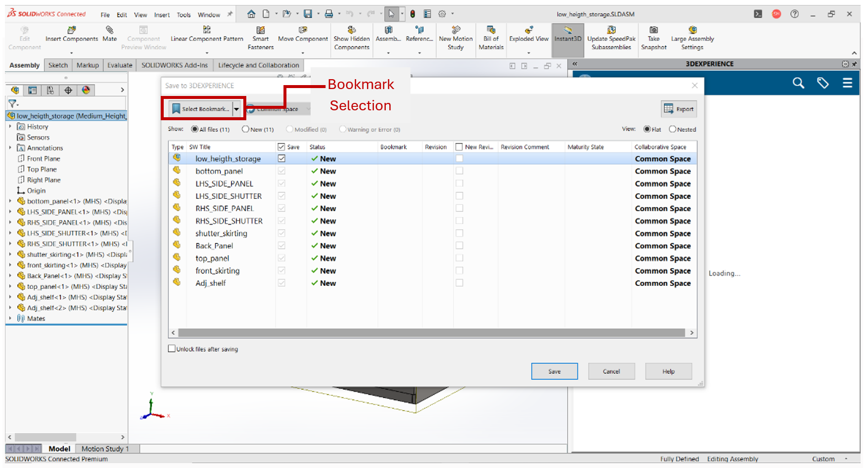 • Here the assembly model is not saved to the 3dx platform, now click on the “Save Active Window” in Lifecycle tab.