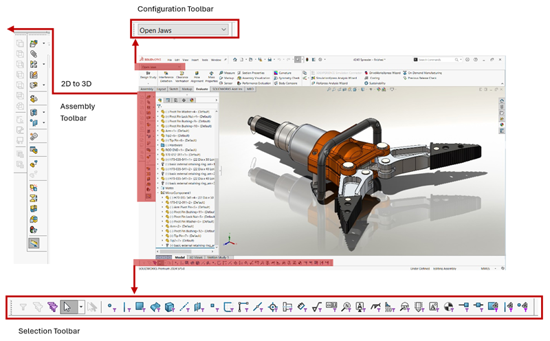 As you can see, Toolbars can be made available in SOLIDWORKS UI for quick access. Also, By Clicking, Holding and Drag & Drop, it can be placed on to any of the corners.