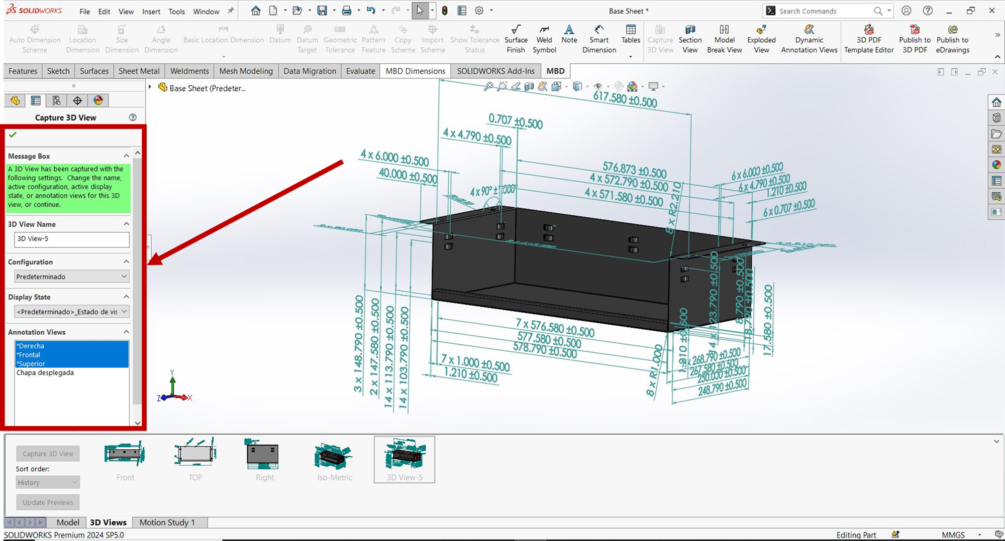 Use the Annotation Views tab to organize how your dimensions and GD&T annotations appear in different orientations (e.g., front, top, isometric). These views will be used in the 3D PDF.