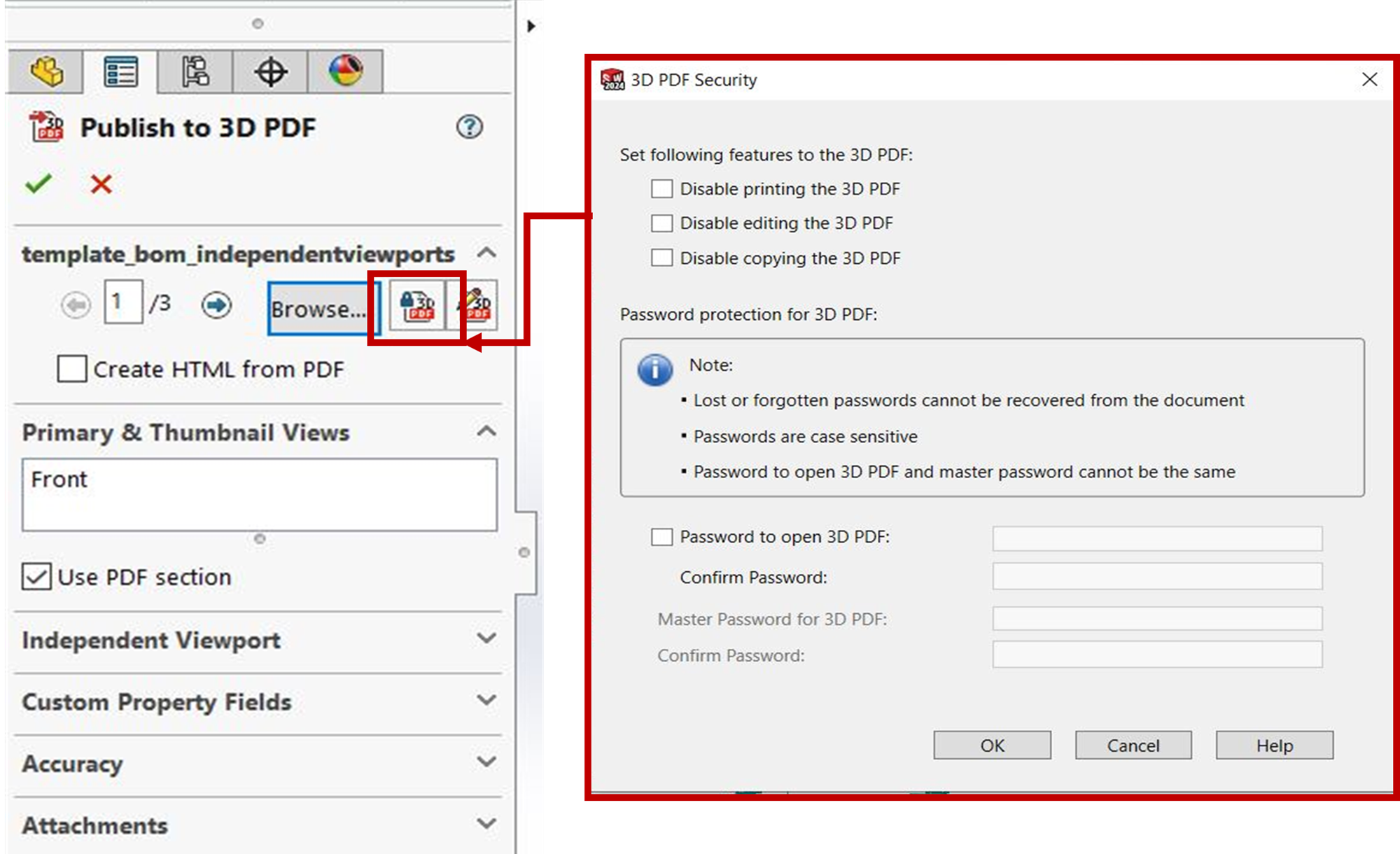 Browse option click Security Settings. It will enable the 3D PDF Security feature for the PDF and we can protect it from the other sources.