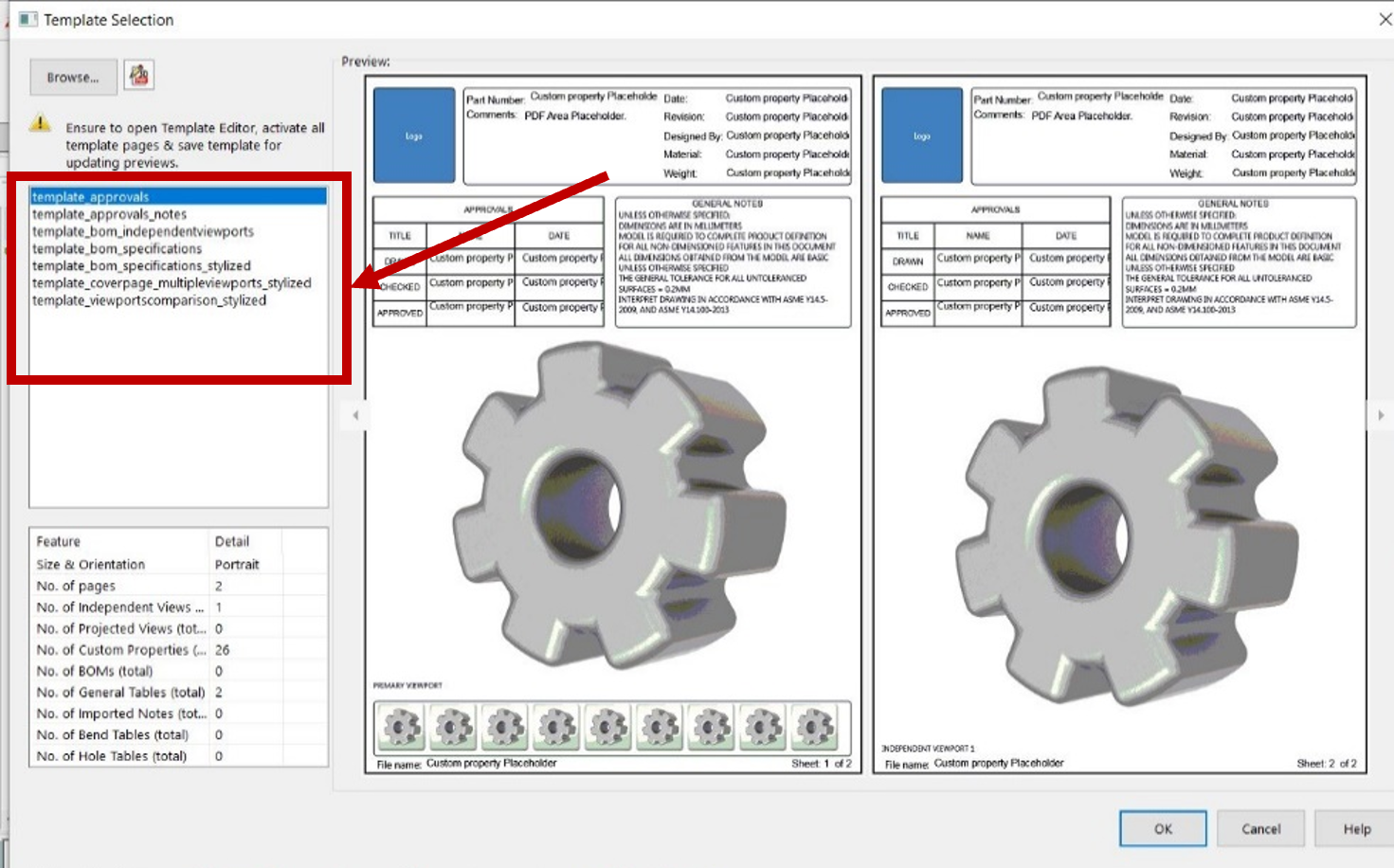 Click on the Browse option and select the derived Template(Part, Assembly, Engineering, Manufacturing) for the PDF.