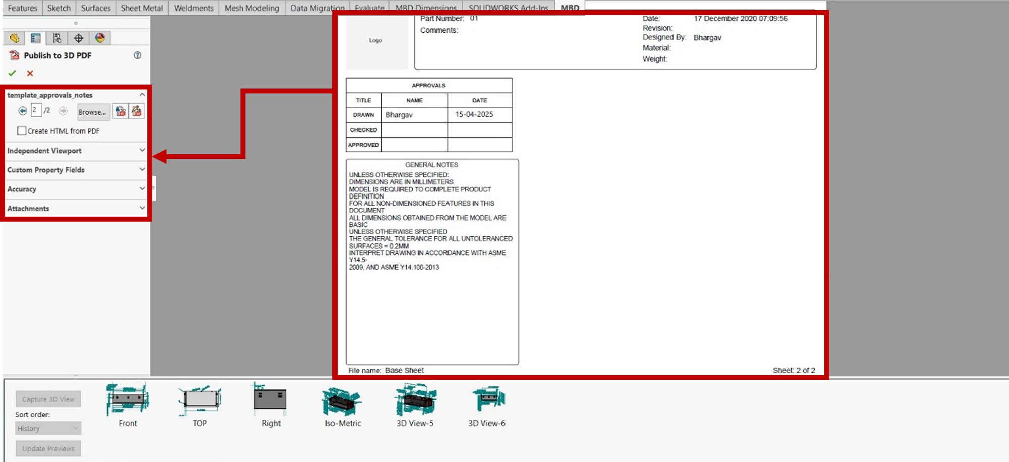 Let us see how SolidWorks MBD works with 3D PDF’s and eDrawings