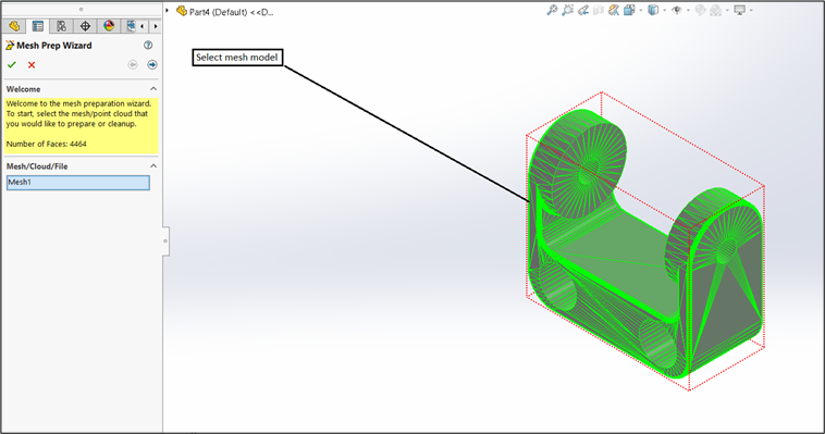 To utilize Scanto3D, access the file containing the scanned body you intend to manipulate. Depending on the body's size and scanning method, isolating specific areas for focus might be beneficial. To achieve this, choose the desired portion of the body and activate the Mesh Prep Wizard.
