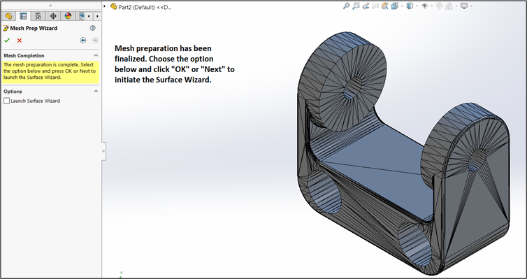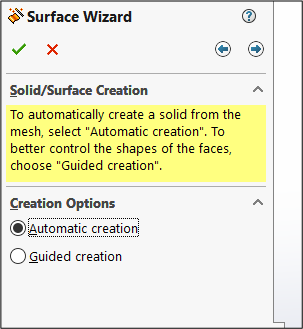 The Surface Wizard becomes accessible once you finish using the Mesh Prep Wizard. Within the Surface Wizard, you'll encounter two creation options: Automatic and Guided.