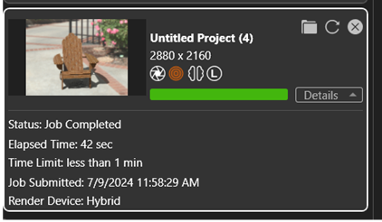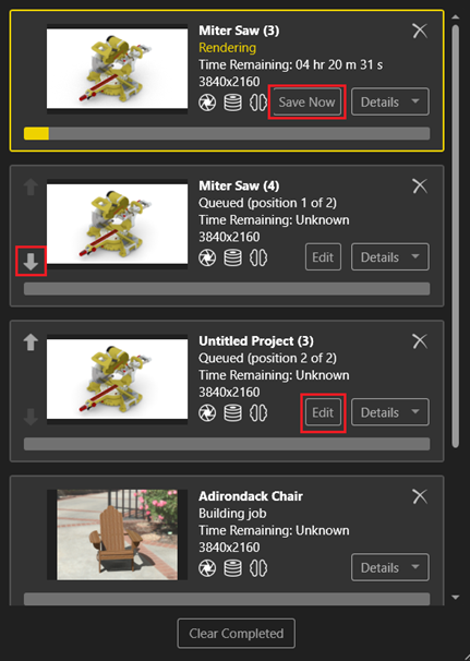 Once a rendering job finishes, the queue provides feedback on its duration, enabling better planning for future projects. The color-coded system offers instant status updates, highlighting completed jobs in green to clearly show progress.