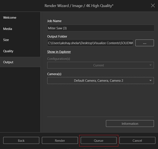 Select the animation you want to render, whether it's a turntable or another animation you've created. The Rendering Wizard in SOLIDWORKS Visualize Professional simplifies this process, guiding you through each step from selection to final output.